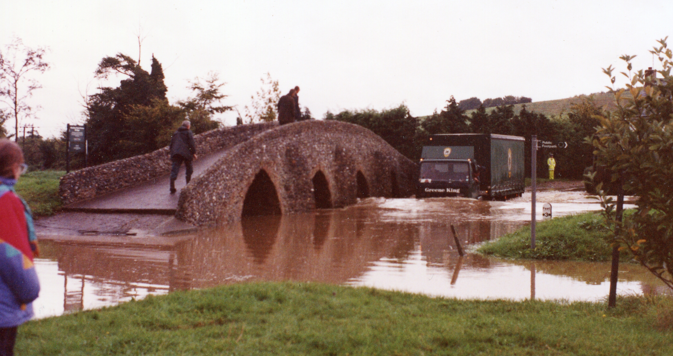 1994 Packhorse bridge ford Greene King lorry takes a chanc